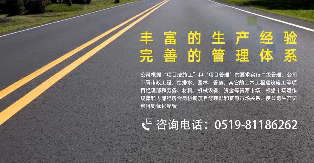 在建筑業改革進程中,公司致力于深化企業內部改革,使施工能力和生產規模得到了進一步發展,為適應開放的建設市場,公司始終把社會效益放在首位,堅持三個文明一起抓,大力加強黨的建設,注重企業文化建設,提高員工素質,加強內部管理,視質量為企業的生命,加強安全文明施工管理,提高企業知名度和核心競爭力,同時積極開拓市政工程建設市場。先后承建各類代表性工程有:贛江路工程、金湖城南干道工程、溧陽博愛橋工程、溧陽北固橋工程(常州市優)、贛江路白改黑工程(常州市優)、金湖健康路白改黑工程、錦海星城道路管線工程、溧陽監獄道路管線工程、晉陵南路工程、福陽路改造工程(江蘇省揚子杯)、橫塘河污水截流工程… 更多了解